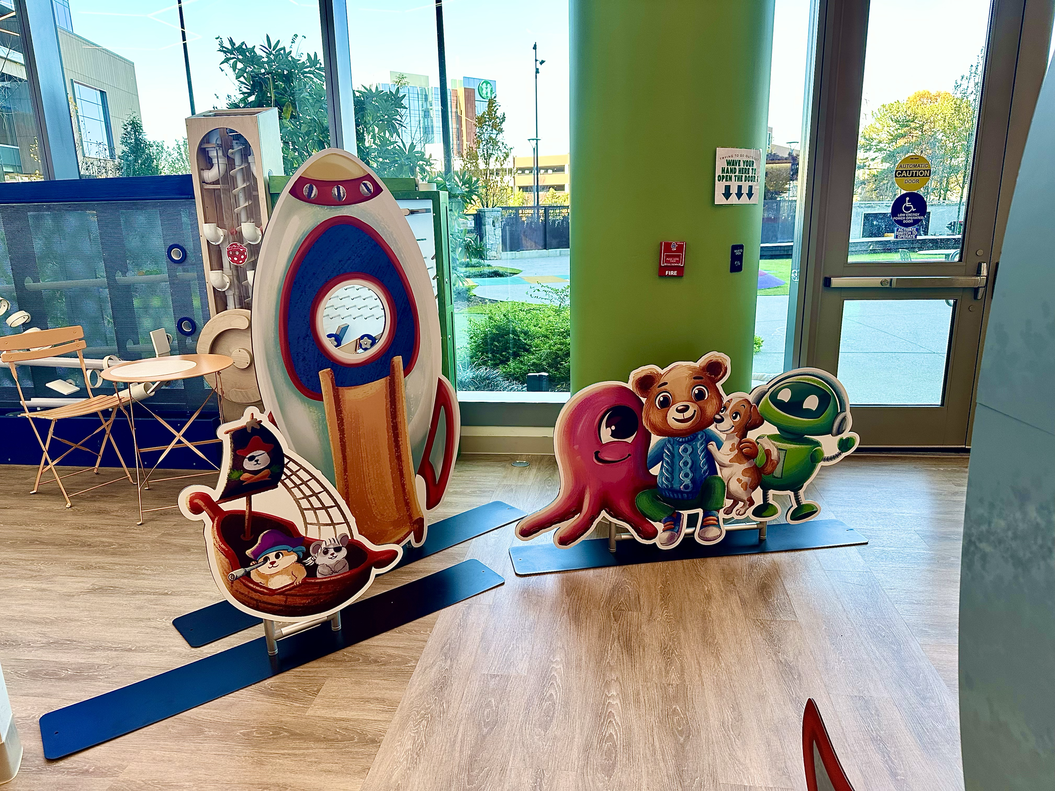 We created oversized displays, free-standing pieces, life-sized character standees, custom backdrops, interactive elements, and photo opportunities. And this is where we excel-large format printing by using multiple substrates including fabric, foamcore, and half-inch ultraboard to the custom fabrication of the display stands. We transformed a 13’ photo booth into a large rocket ship while still maintaining access to the booth for the children. We even created a 5’ tall, free standing dandelion (an integral element from the book) for a photo opportunity display.