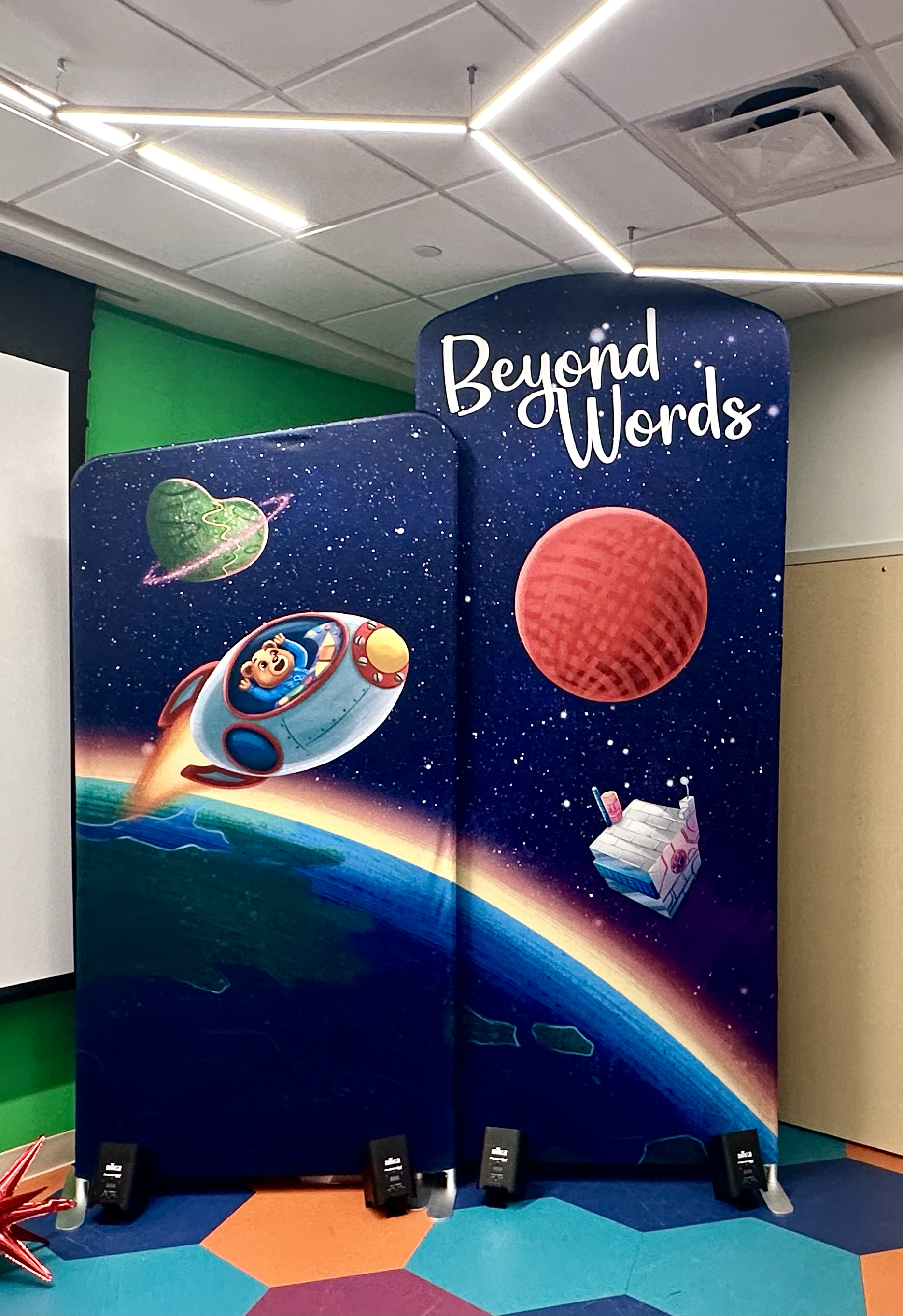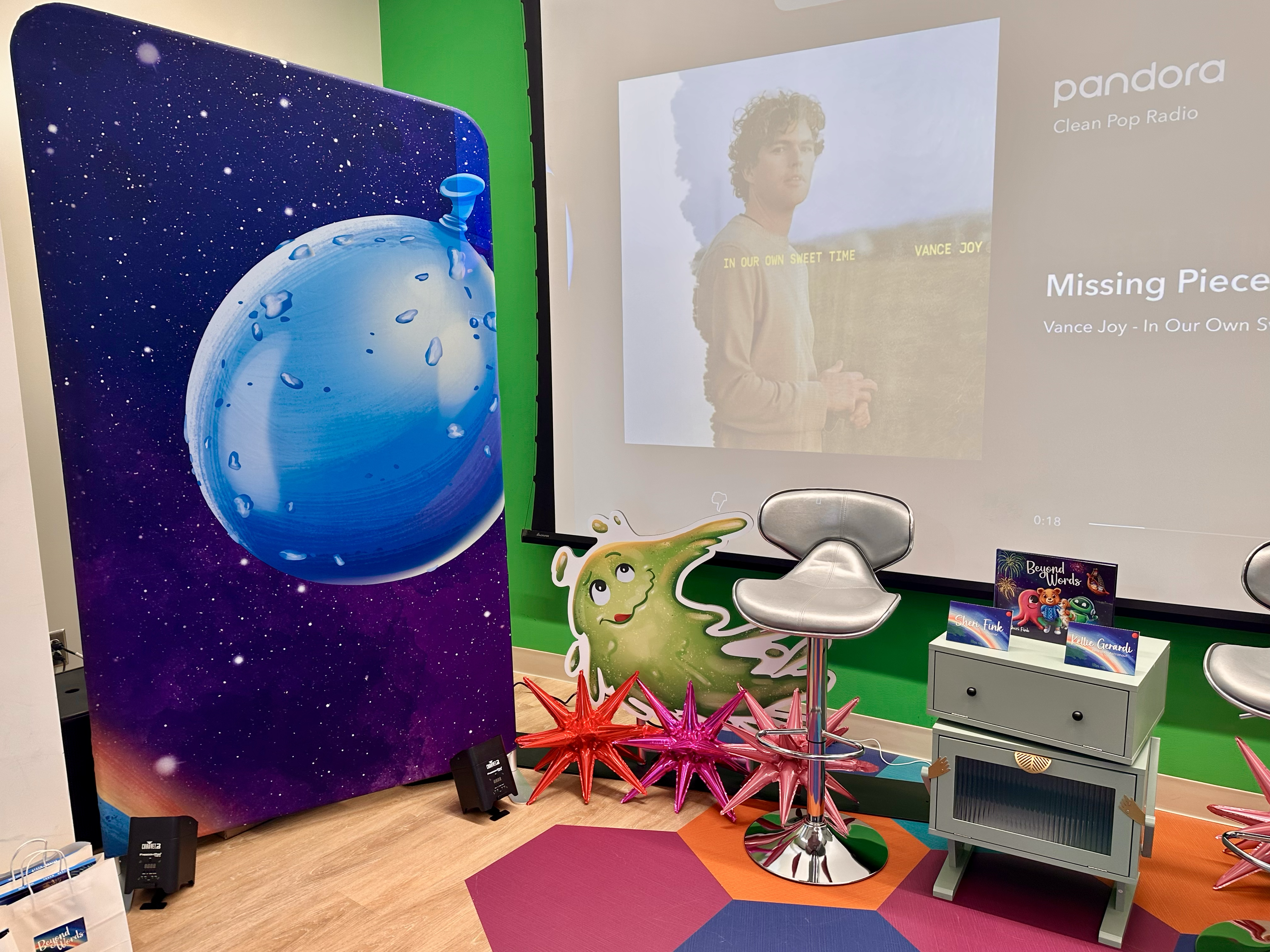 Vox was challenged by our client at You Are Here, agency (YAH) to provide an immersive setting for the start of a new book tour that took place in two very special places. “Beyond Words” is a brand new, inspirational and illustrated journey for children, explaining the significance of life and all of it’s wondrous journeys and meanings- even when met with the obstacles of disabilities and illness. Vox was challenged to take key elements, characters, and settings from the book and make them come to life.
